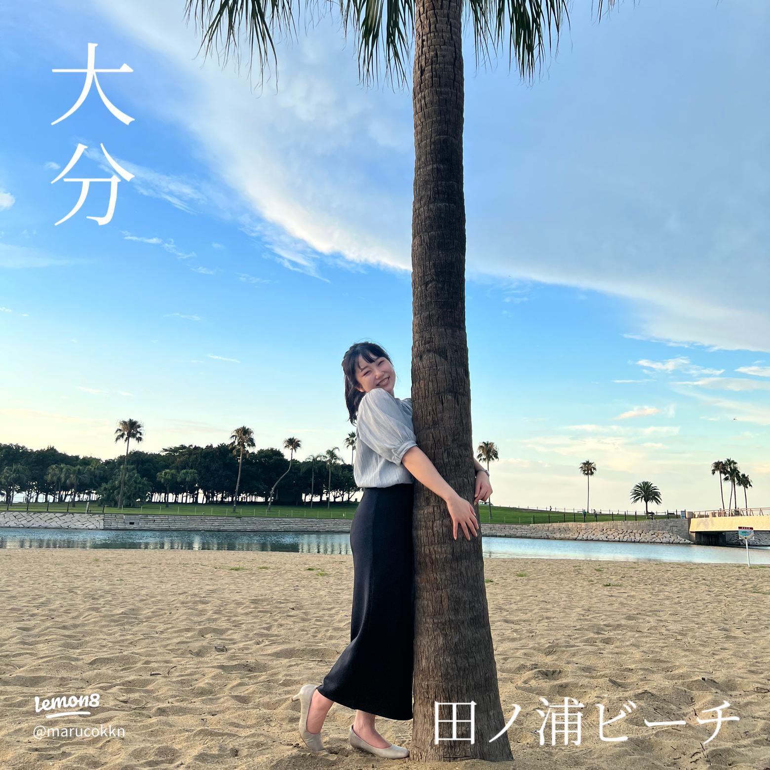 大分市『田ノ浦ビーチ』人口島は恋人の聖地に認定!青い空と青い海が最高♪あゆ姫食い倒れ放浪記。