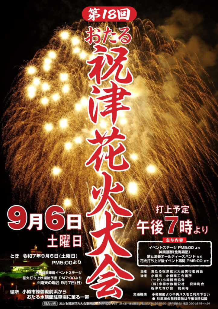 おたる祝津花火大会2025の日程・時間や屋台は?アクセスや駐車場は?そらいろ~日本が魅せる多彩な表情~。