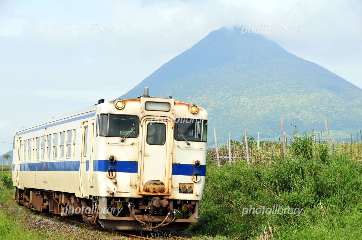 開聞岳と指宿枕崎線の普通列車 写真素材4208142- フォトライブラリ。