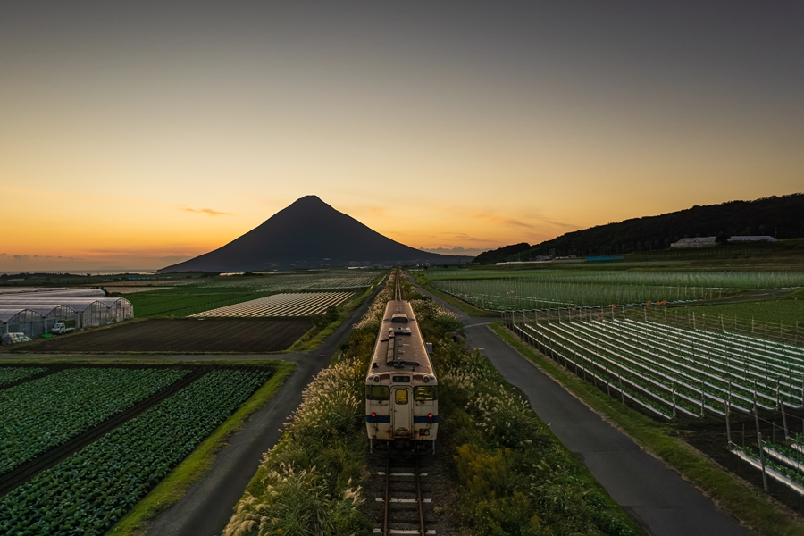 圧巻の夕焼け。開聞岳と指宿枕崎線気動車キハ47系を題材に鉄道風景撮影│釣りと旅、写真のブログ「Nossa ノッサ 」。