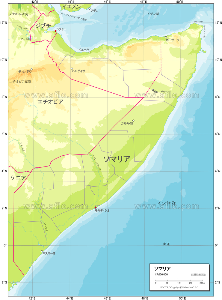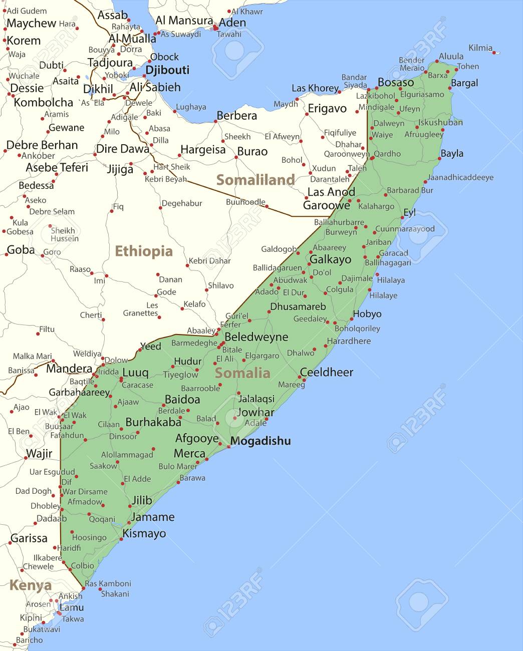 ソマリアの地図.国の国境、都市部、地名や道路を表示します。のイラスト素材・ベクター Image 95644554。