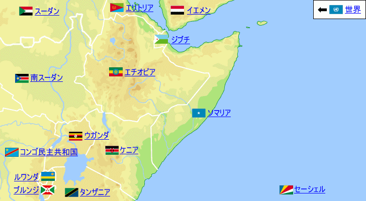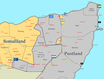 ソマリアは、ソマリランド 黄 とプントランド 緑。