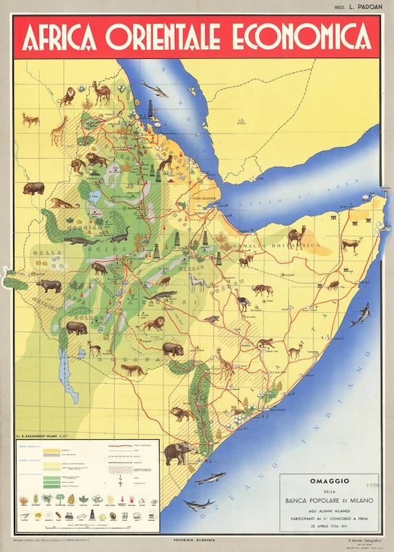 1936年イタリア領東アフリカ地図:ソマリア、エリトリア、エチオピアアートプリント - Etsy。