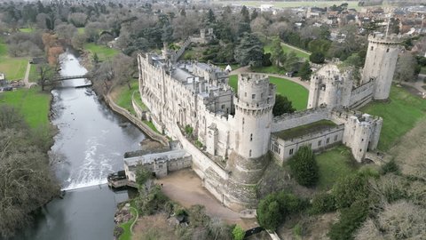 ウォリック城 – 英国のウォリックの町の象徴的な中世の要塞と地下牢。」の動画素材。