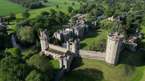 英国ウォリックシャー州ウォリック – 2022年10月24日:秋の木々に囲まれたウォリック城の空撮、ウォリックシャー、イングランド、ゆっくりと前進の動き。」の動画素材 ロイヤリティフリー 1096408941Shutterstock。