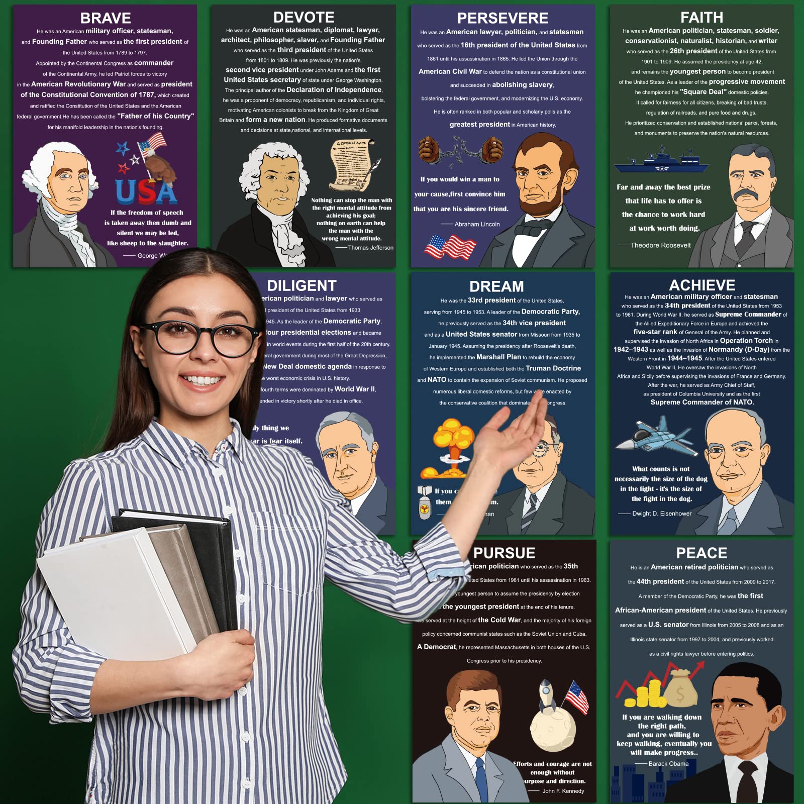 Amazon.co.jp: アメリカ合衆国大統領ポスター 有名な大統領 感動的な引用 ウォールアートポスター。