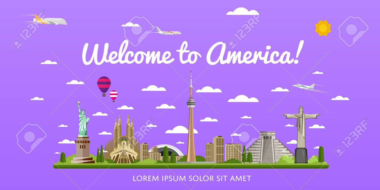 アメリカのポスターで有名な観光スポットへの旅行します。のイラスト素材・ベクター Image 71722315。