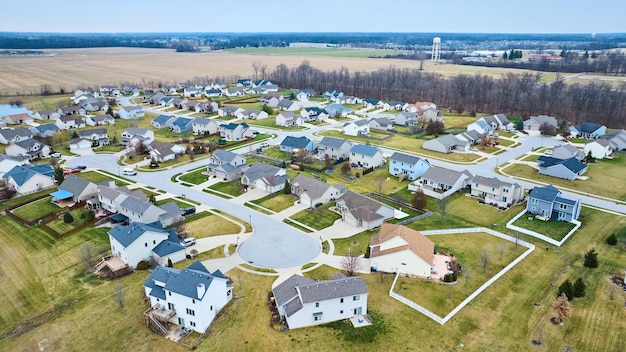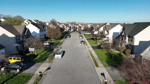 米国の住宅や住宅が密集する住宅地の空中軌道写真。春の間にアメリカの田舎の近所。」の動画素材 ロイヤリティフリー 1105373671Shutterstock。