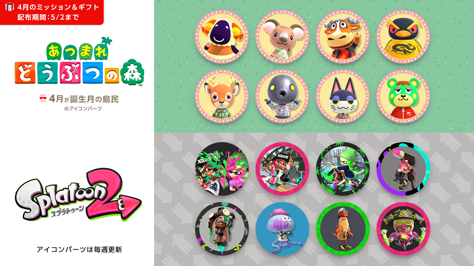 Switchオンライン 4月の「ミッション&ギフト」は『スプラトゥーン2』などのアイコンパーツが登場t011.org。