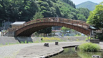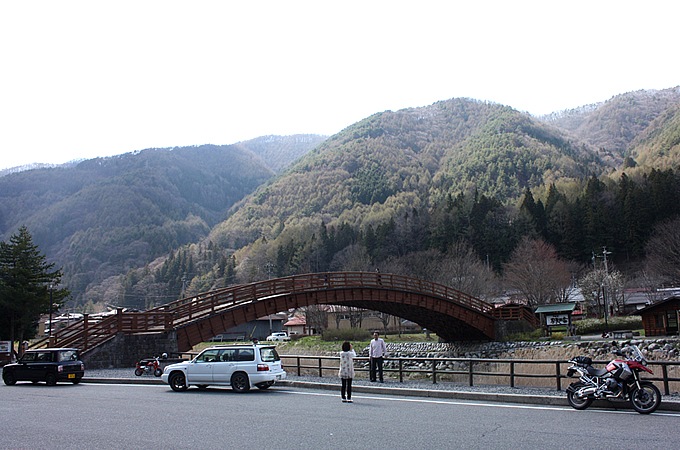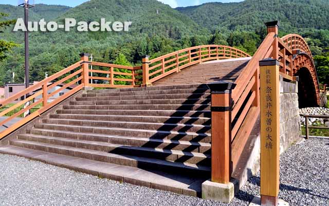 奈良井宿へ行く木曾の大橋 駐車場が有り大橋を渡って行く- Photo。
