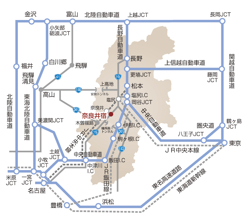 道の駅 奈良井木曽の大橋 アクセス・営業時間・料金情報。