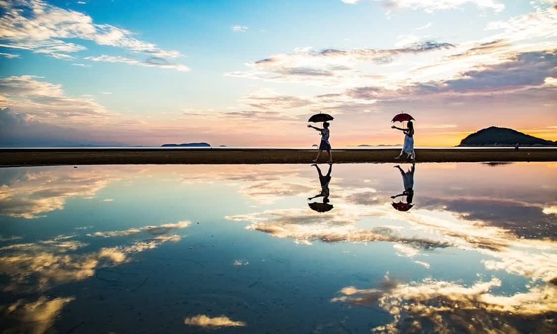 香川県父母ヶ浜 ウユニ塩湖的な絶景反射写真の撮り方とおすすめ時間帯播州鬼散歩。