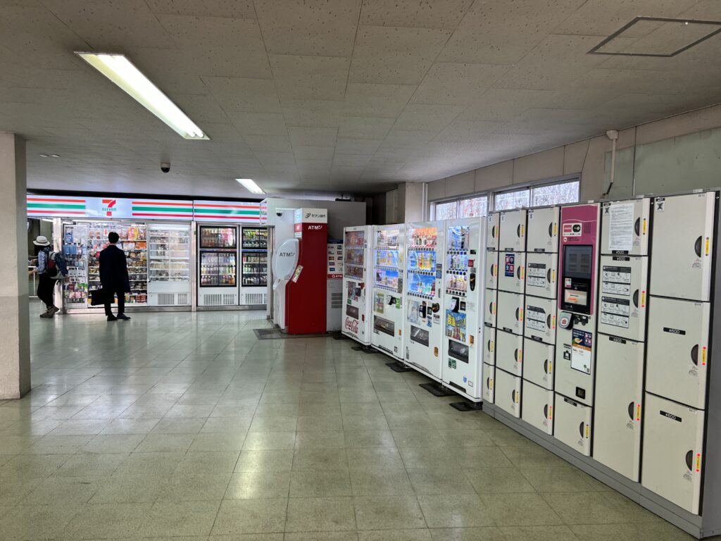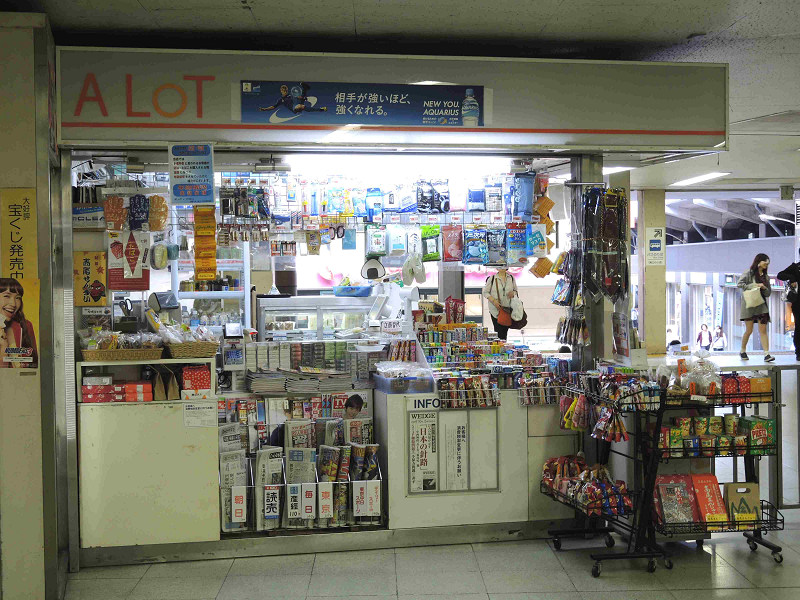 高尾駅南口改札内通路でのショッピング、自動販売機など: 高尾駅案内。