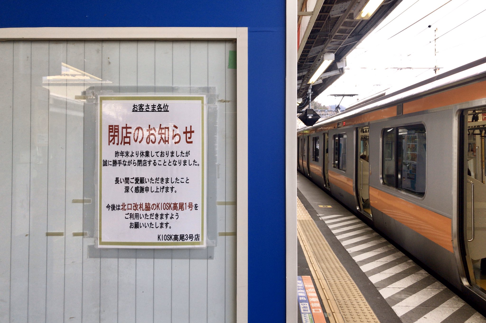 高尾駅1、2番線ホームでの食事、自動販売機、待合室、駅長室など: 高尾駅案内。