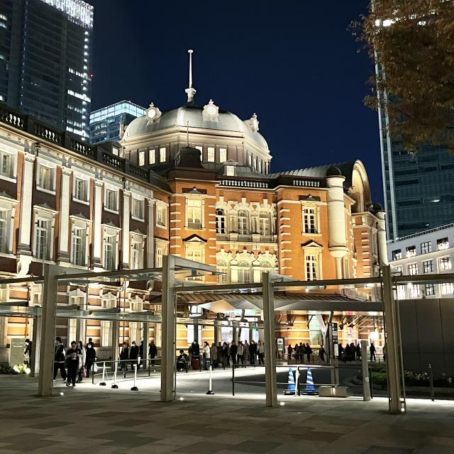 日没とともに灯る柔らかなオレンジ色の光。 東京駅では丸の内駅舎のライトアップをお楽しみいただけます✨ 建物を構成するレンガや石などの素材に合わせて細やかに調光した照明によって、時代を超えた駅舎はより重厚で荘厳な雰囲気に包まれています🧱東京駅にお越しの際。