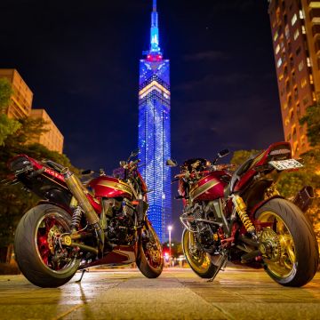 CB1100 バイク女子と夜景ポートレート 博多編CB1100と共に。