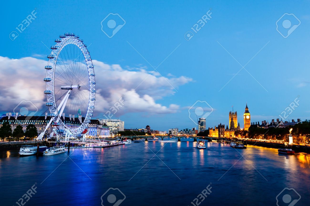 ロンドン・アイと夕暮れのロンドンの風景 イギリスの風景Beautiful Photo.net世界の絶景 美しい景色。