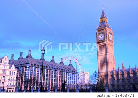 ロンドンアイとビッグベンの夕景の写真素材FYI03309128ストックフォトの Qlean Market キュリンマーケット。