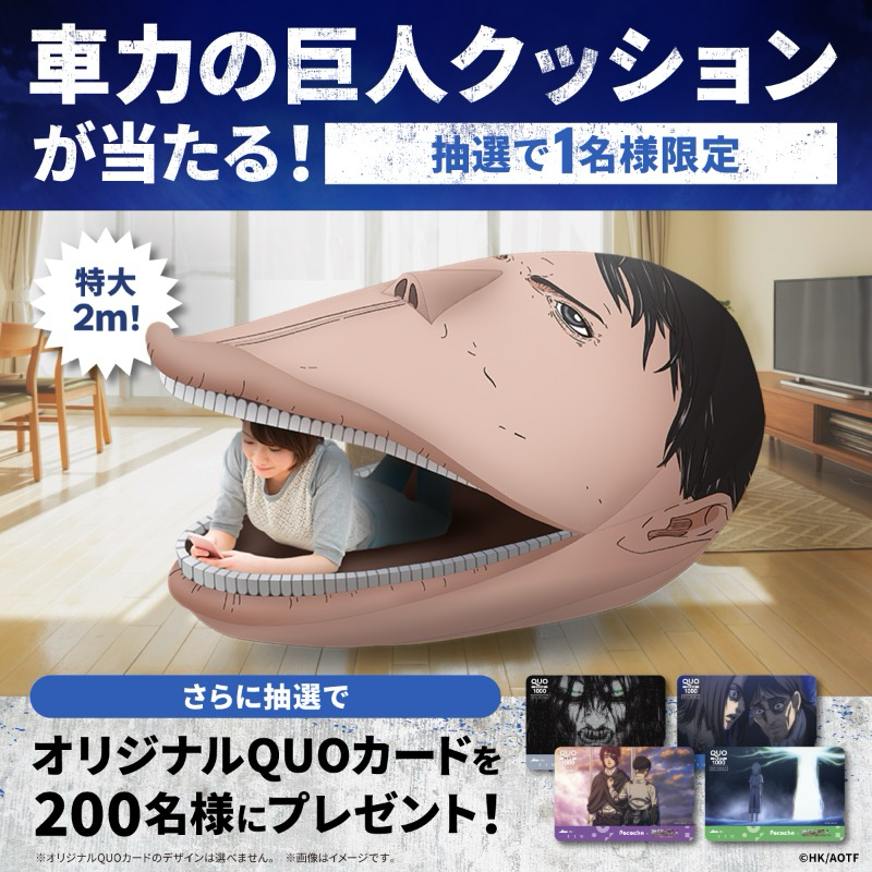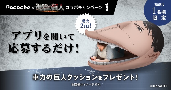 車力の巨人に食べられたい人必見!「Pococha x 進撃の巨人」コラボで全長2メートルのクッション爆誕おたくま経済新聞。