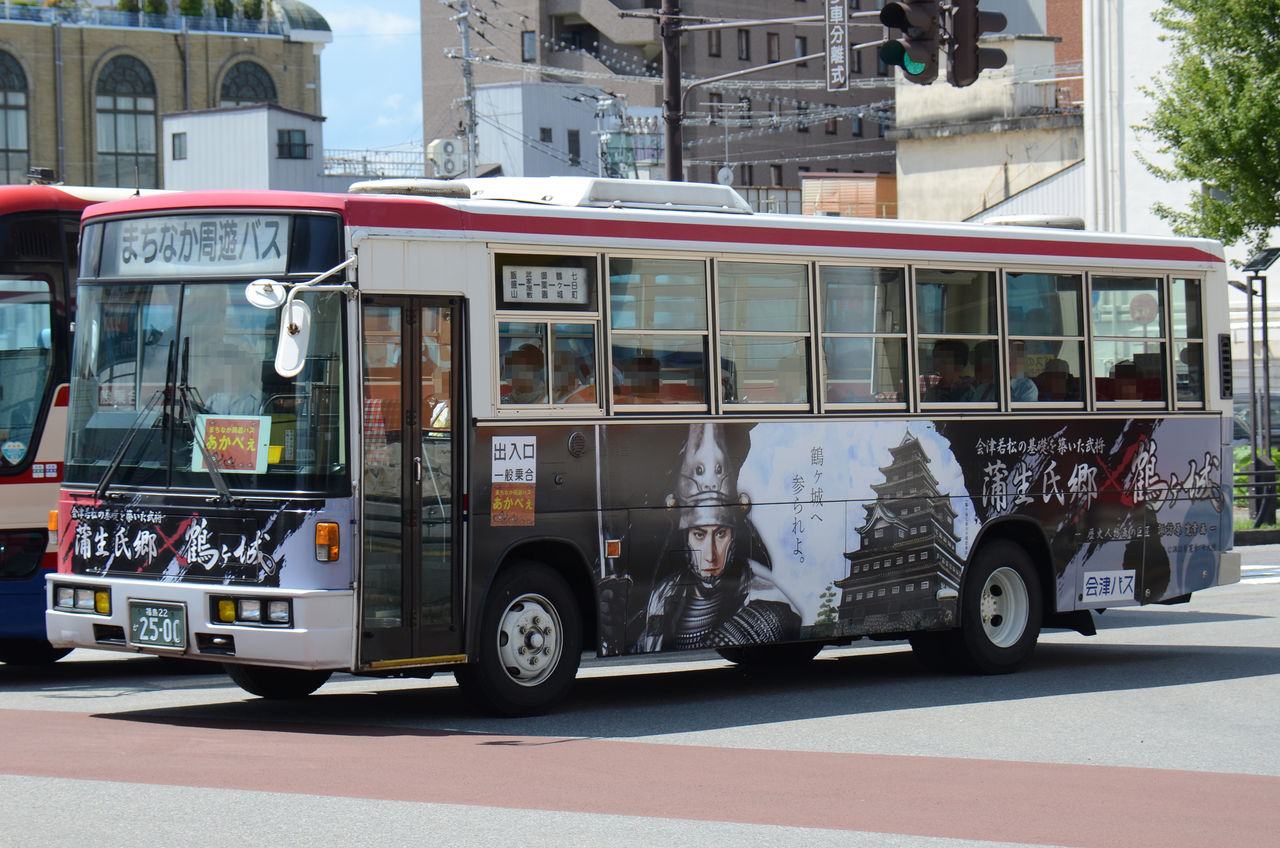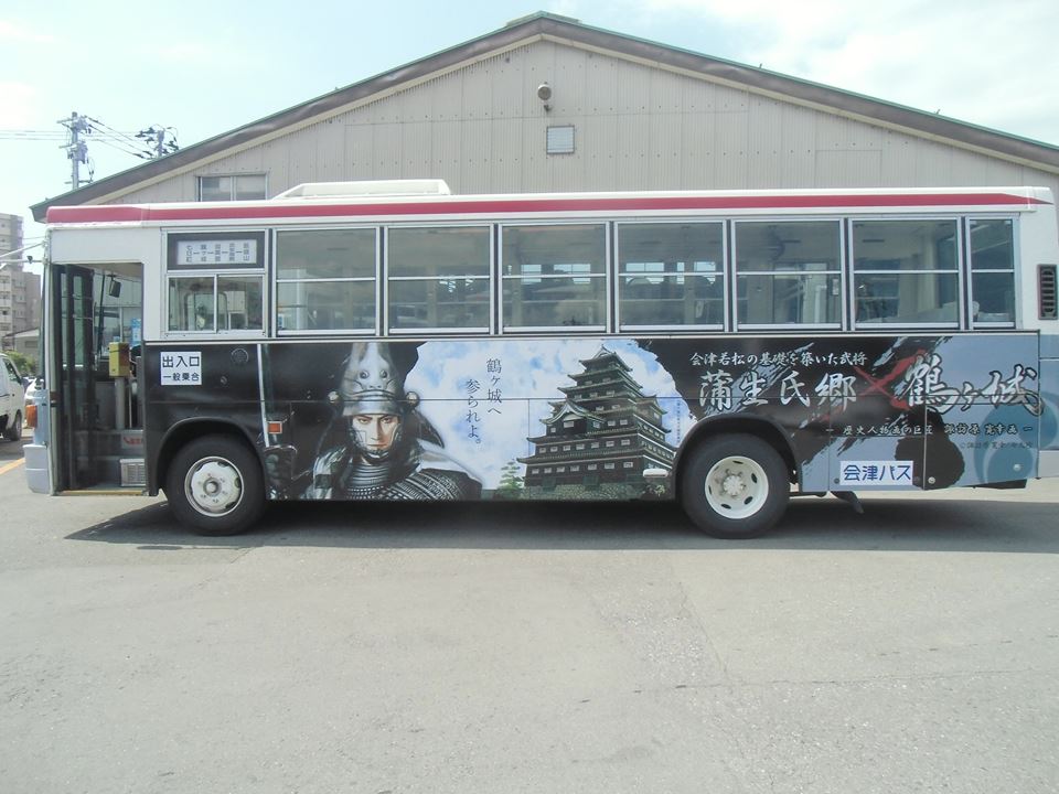 蒲生氏郷×鶴ヶ城」ラッピングバスが運行開始! 会津乗合自動車株式会社様戦国魂ブログ。