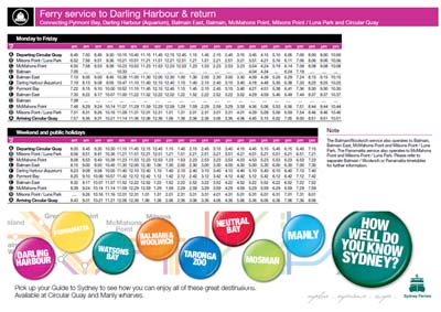 時刻表と路線図-シドニーのフェリー-シドニーで失敗しないための生活術。