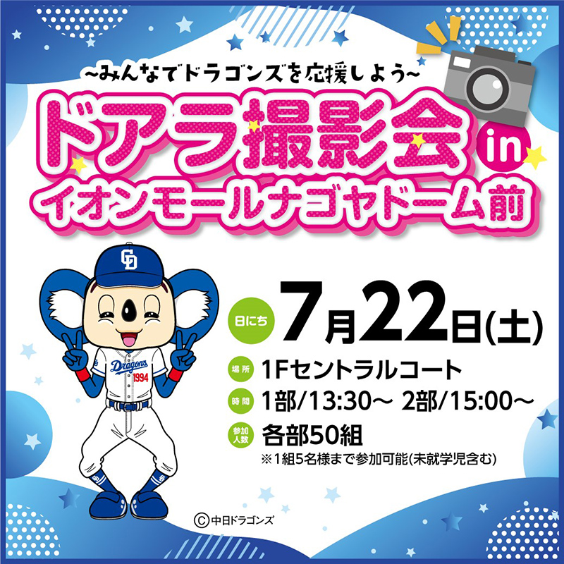 中日ドラゴンズ オフィシャルウェブサイト - ドラゴンズニュース:イオンモールナゴヤドーム前でドアラ撮影会を開催。