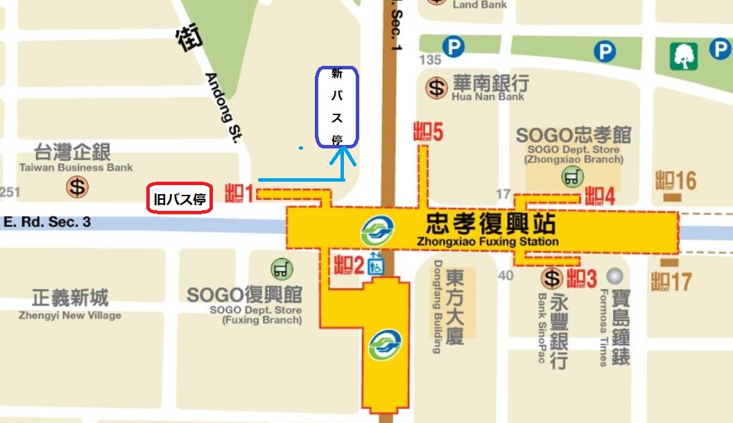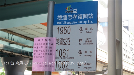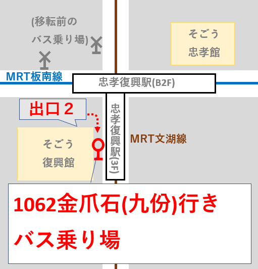 2017年春再移転! 九份行き 1062バス停@忠孝復興駅 行き方完全ガイド。