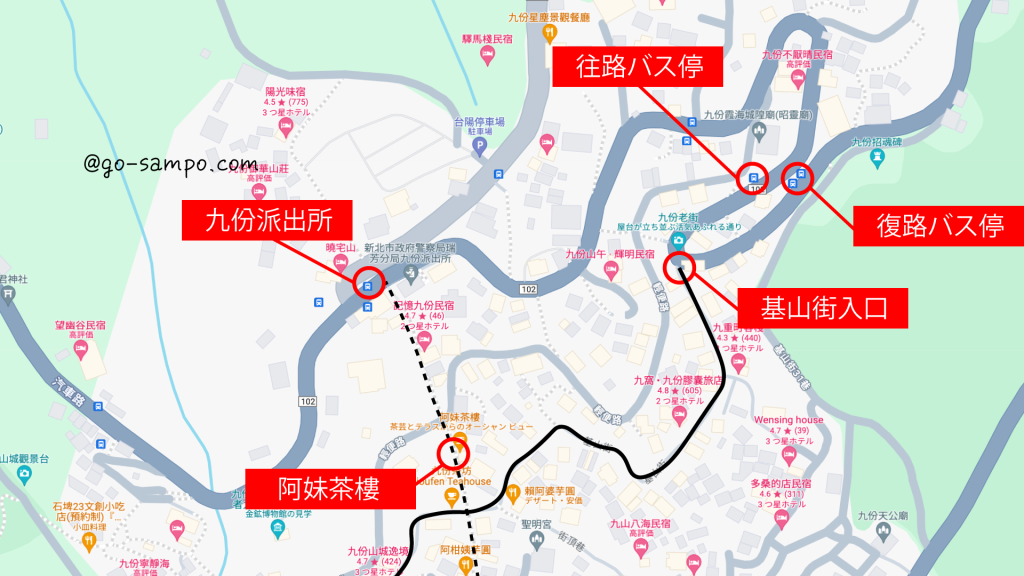 九份老街5 九份老街への行き方、路線図 高速バス編- 乗り換えなしで九份まで行こう!。