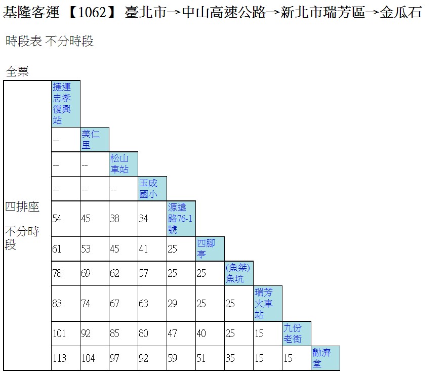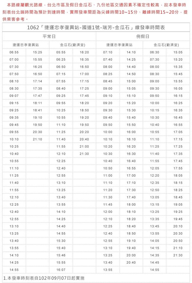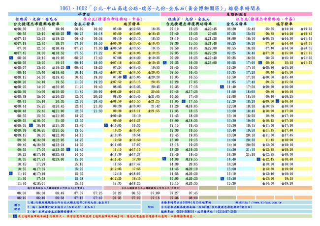 台湾に行きたいわん! - 1062バス路線図 🔷MRT忠孝復興駅から出発する「1062」バス は、金瓜石まで113元、九份までは101元で90分ほど。こちらのバスは、4月から乗り場がMRT忠孝復興駅2番出口そばに変更になっています。。