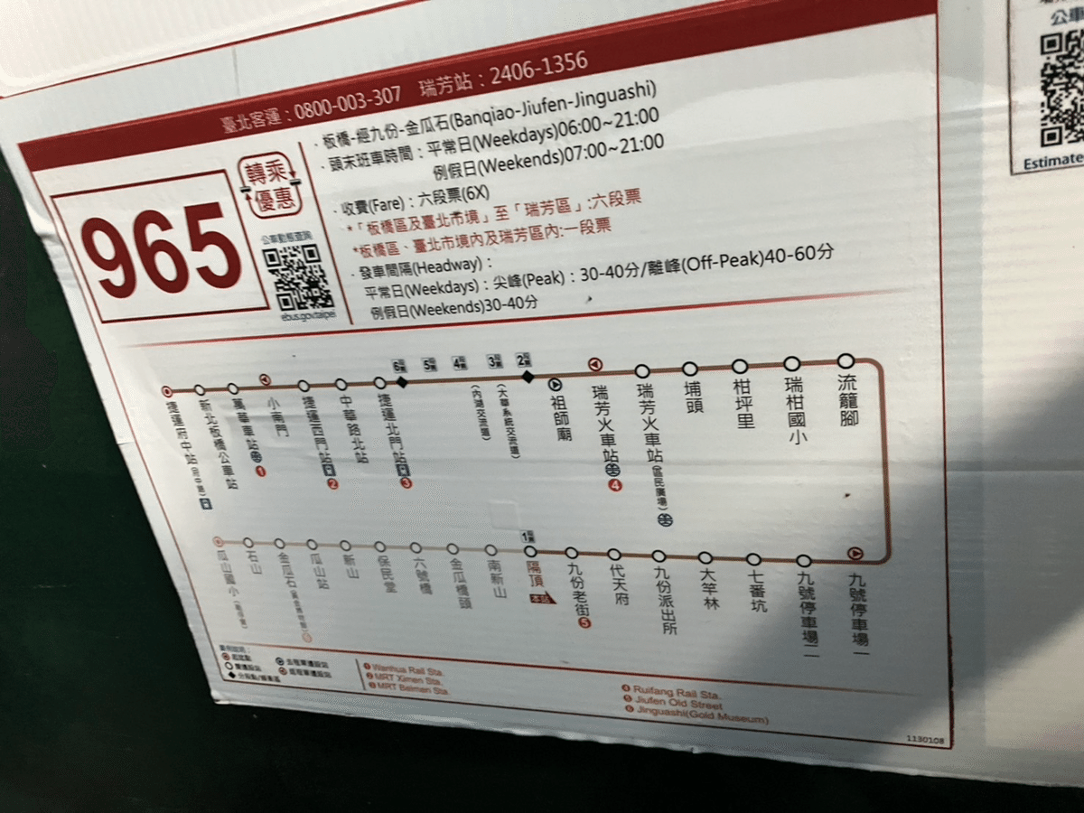 2025年 九份から台北へ帰りのバスは「965」に乗ろう!時刻表はある?ずっきーの台湾生活。