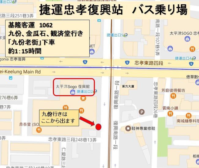 2017年春再移転! 九份行き 1062バス停@忠孝復興駅 行き方完全ガイド 九分バス乗り場@台北。