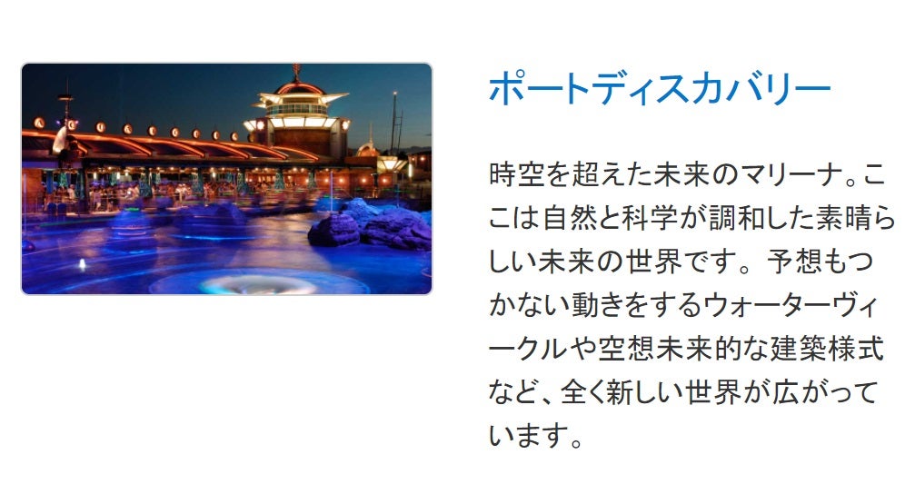 公式 時間や季節によって変わる、東京ディズニーリゾートのいろんな表情~ポートディスカバリー編~東京ディズニーリゾート・ブログ東京ディズニーリゾート。