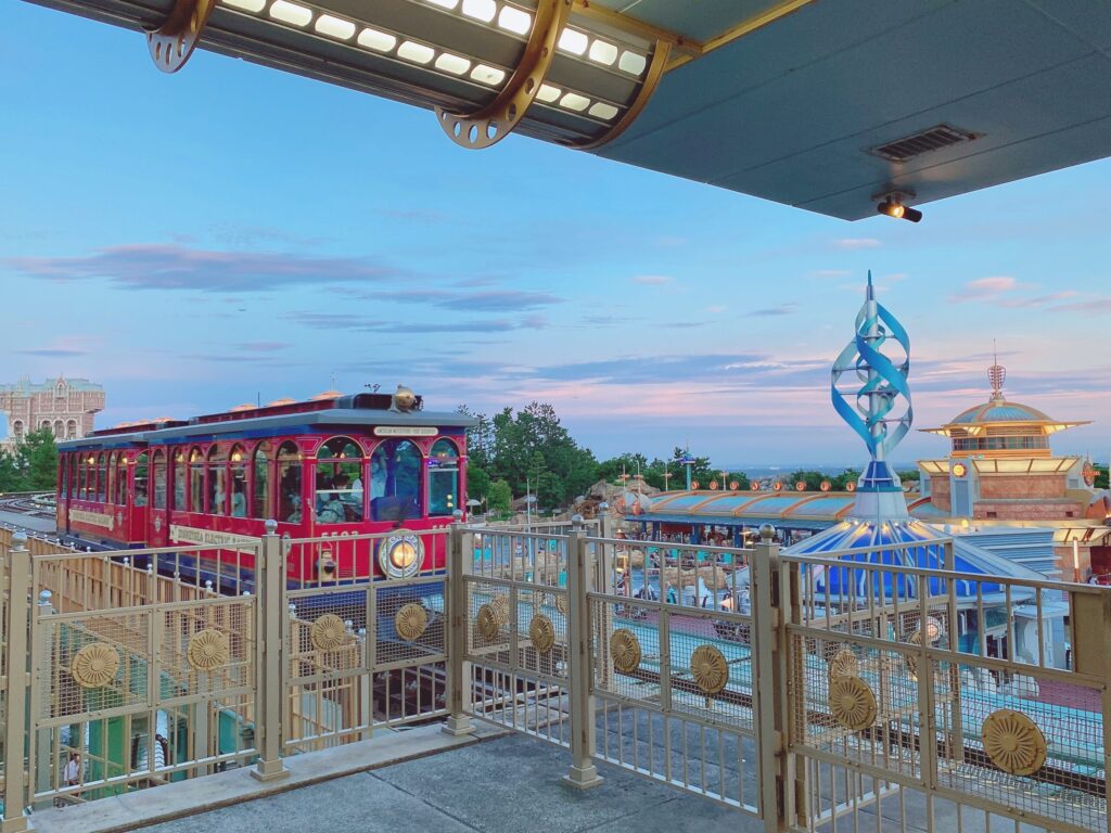 ポートディスカバリーからアメリカンウォーターフロントのエリア!夕焼けの時間は、このあたりが特に綺麗!✨長期計画によると、アクアトピアの位置に別の建造物の話があるみたいですね💦なくなってしまうと悲しいですね😭. 📍 ロケーション: 東京ディズニシー。