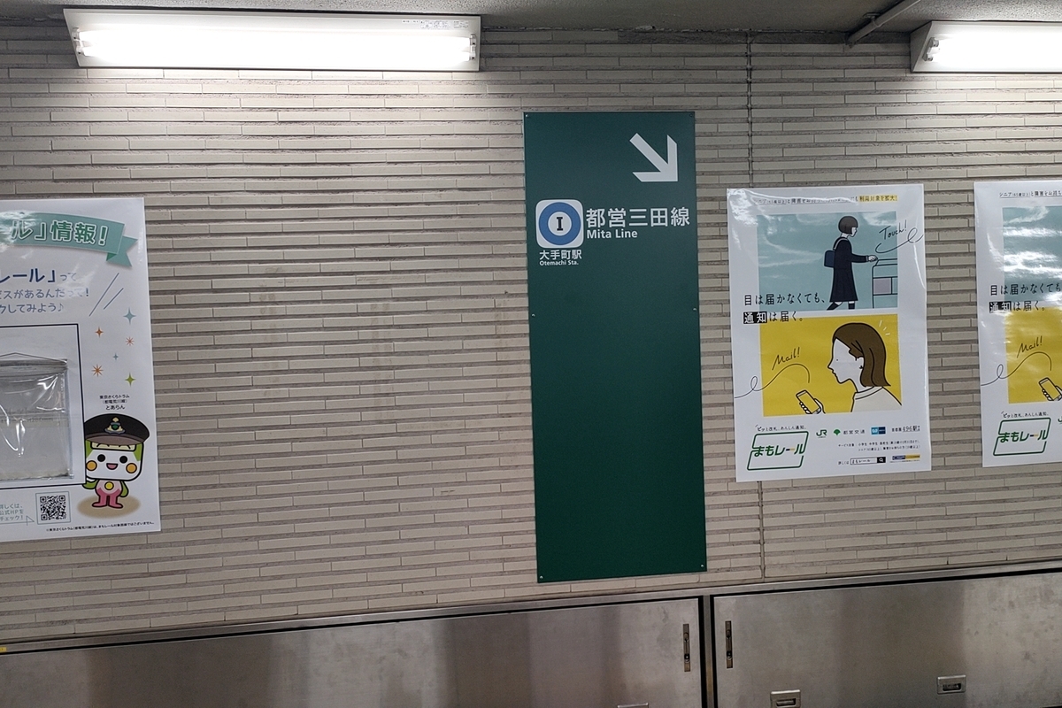 JR東京駅から都営地下鉄三田線大手町駅へ乗り換えやまだぎ。