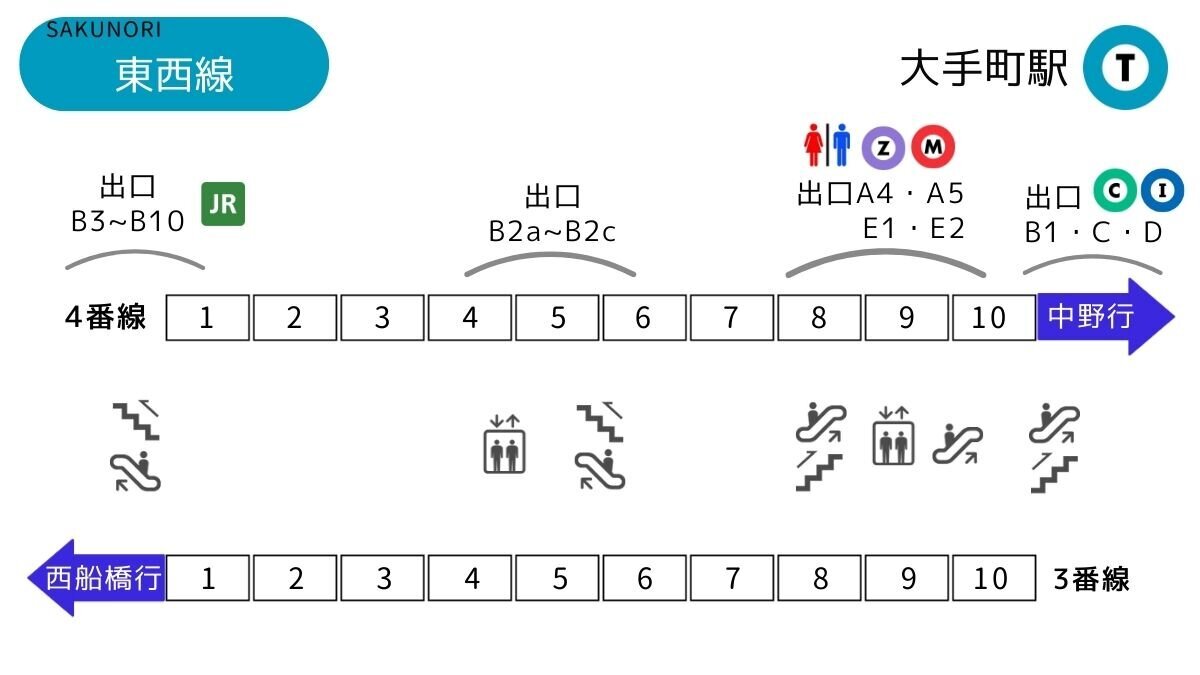 大手町駅の全路線!乗り換え最短・エレベータールートと便利な乗車位置まとめつれてんてん。