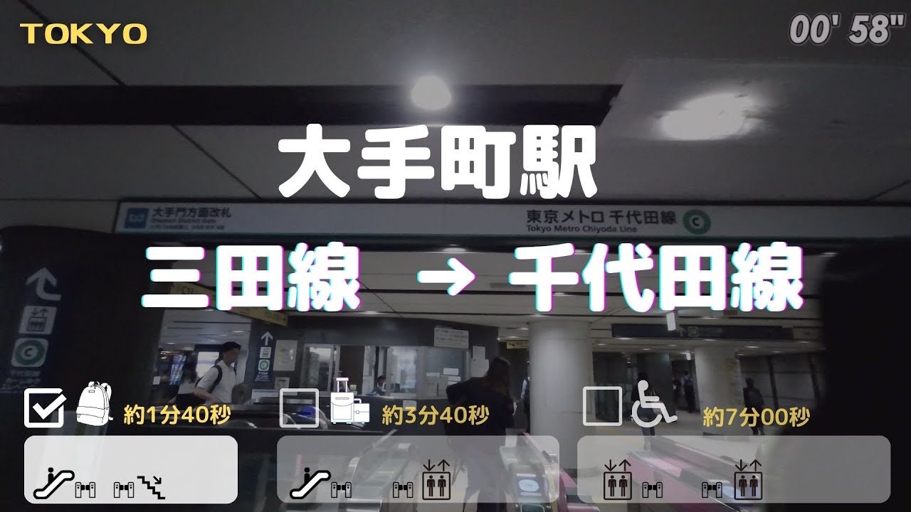 大手町駅 三田線→千代田線 乗換え道順・エレベータールートつれてんてん。