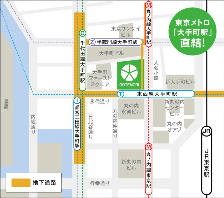 アクセス・駐車場OOTEMORI オーテモリ「大手町」駅直結 商業施設。