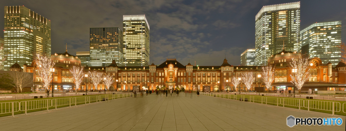 東京駅・丸の内側の夜景の写真素材202730414 毎月1点無料 フリー のストックフォト。