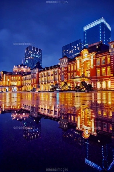 雨上がりの東京駅夜の写真素材FYI01814690ストックフォトの Qlean Market キュリンマーケット。
