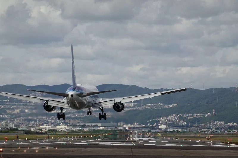阪急宝塚線 曽根駅120%満喫する飛行機着陸の真横千里丘陵の南端。