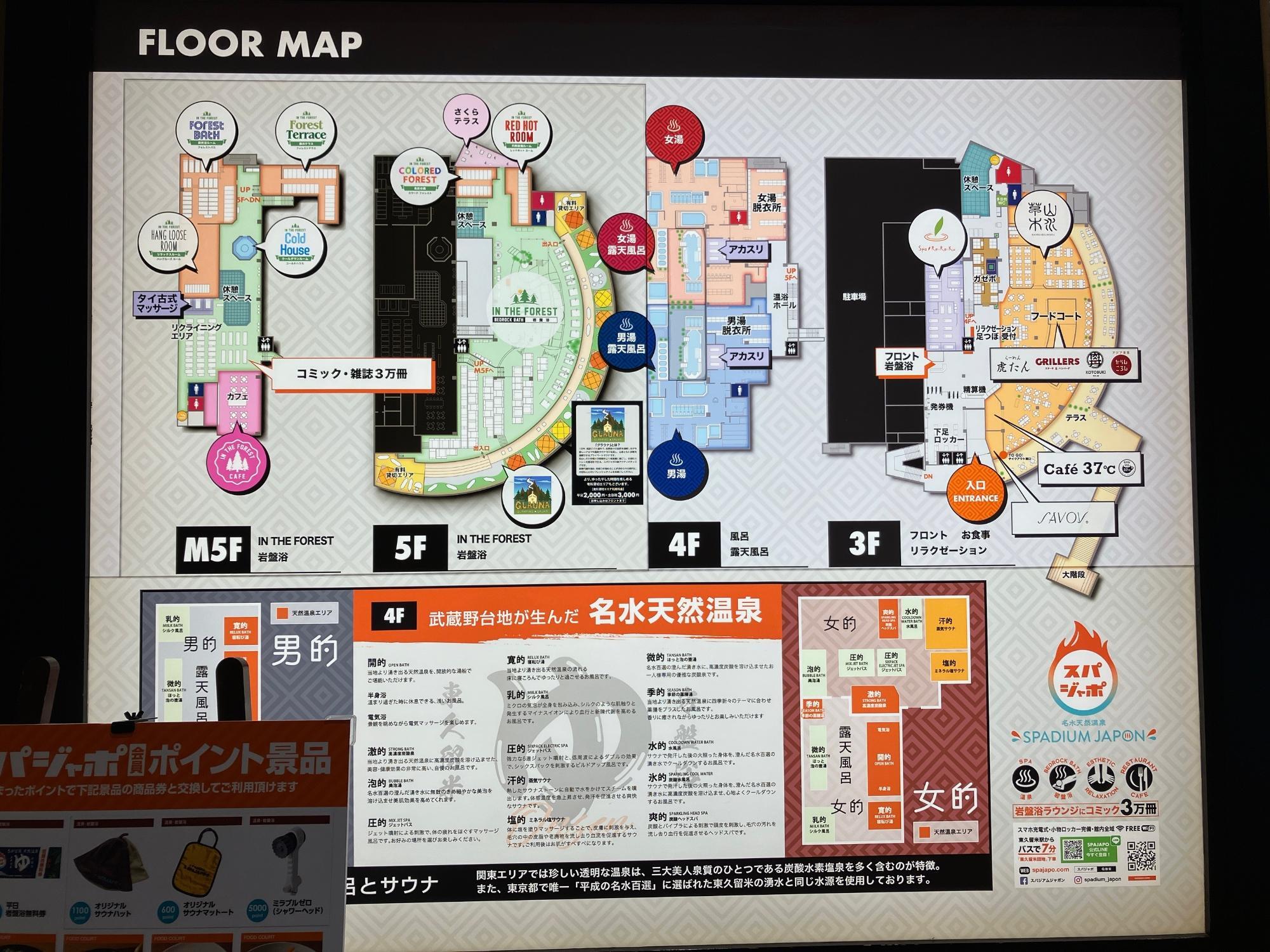 先日、清瀬近くの「スパジアムジャポン」に行ってきました♨️温泉・岩盤浴・グルメエリアがひとまとめになった関東最大級の温泉施設で、「15種類以上のお風呂+サウナ」などのバラエティ豊かなところが魅力👍3階がフロント、4階がスパエリアで、5階だけ岩盤浴ラウンジ。