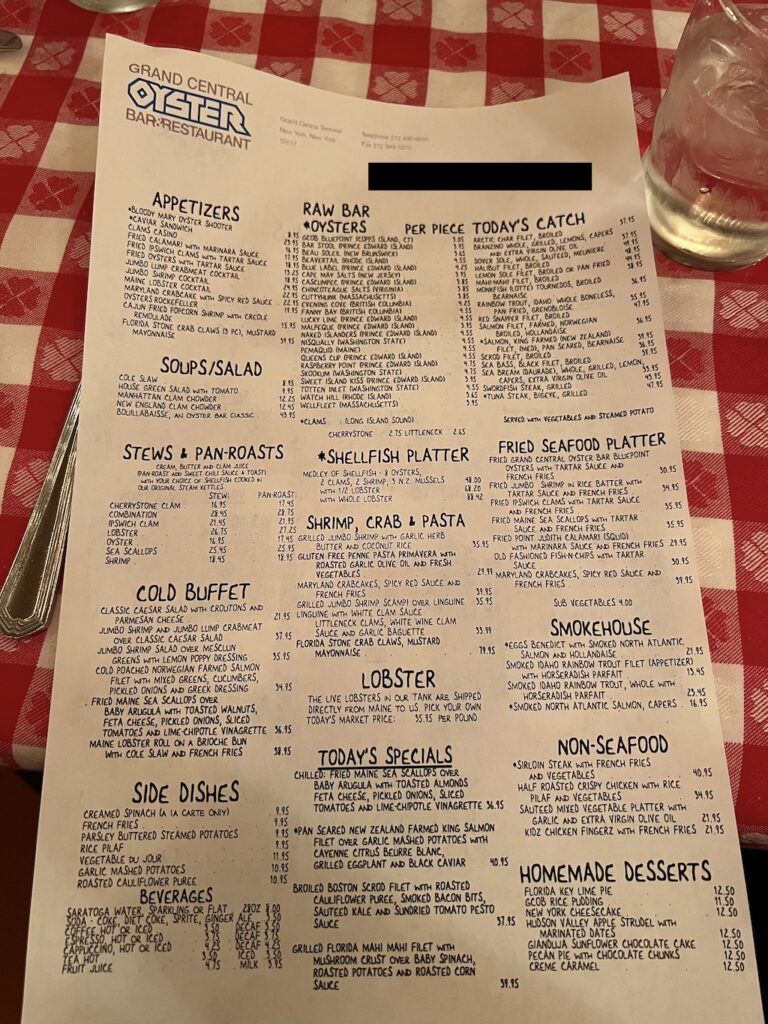 NYグルメ駅構内の名物店!赤チェックのテーブルで牡蠣三昧「グランドセントラル・オイスターバー」グルメピエロ。