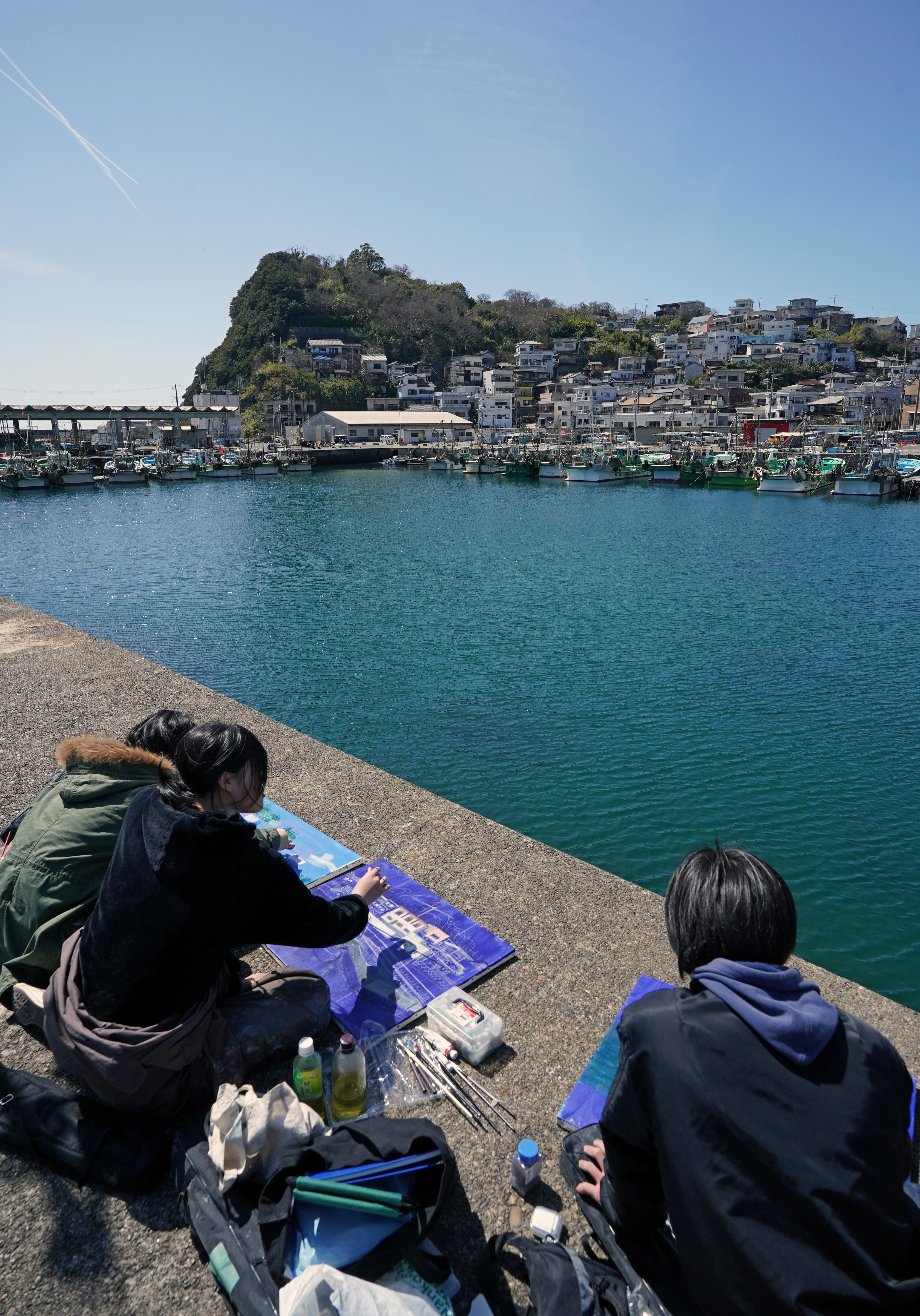 和歌山県の「和歌の浦」という場所を旅していたら , イタリアのアマルフィのような港町に出会った。, 急な斜面に家が建ち並ぶ珍しい光景と,ノスタルジックな港町の雰囲気がとっても素敵だったの。, アートな壁画なども点在していて、,。