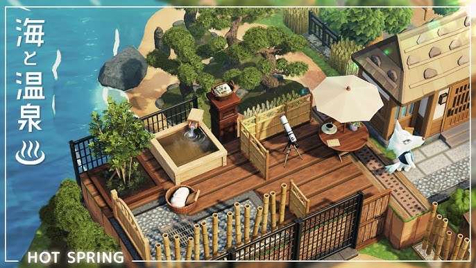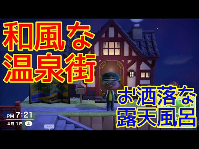 あつ森 マイデザインを使って旅館みたいな本格的温泉!解説!Japan Animal Crossing Hot。