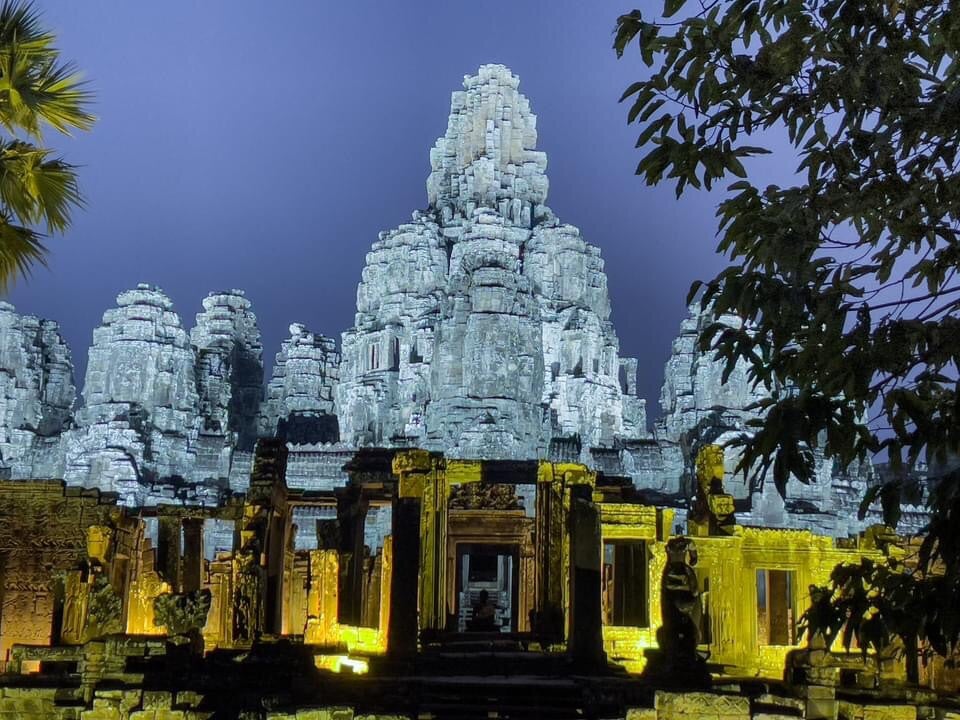 バイヨン寺院には夜にライトアップで綺麗です memokaonアンコールワット日本語ガイド カオーンと一緒。
