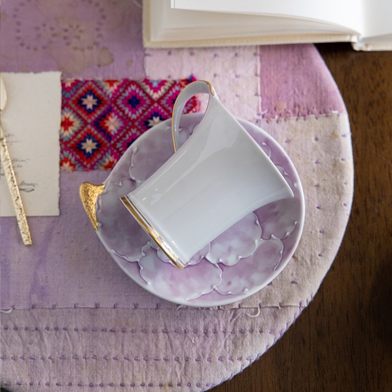 有田焼 波佐見焼 文山窯 紫牡丹 流転コーヒー碗皿。