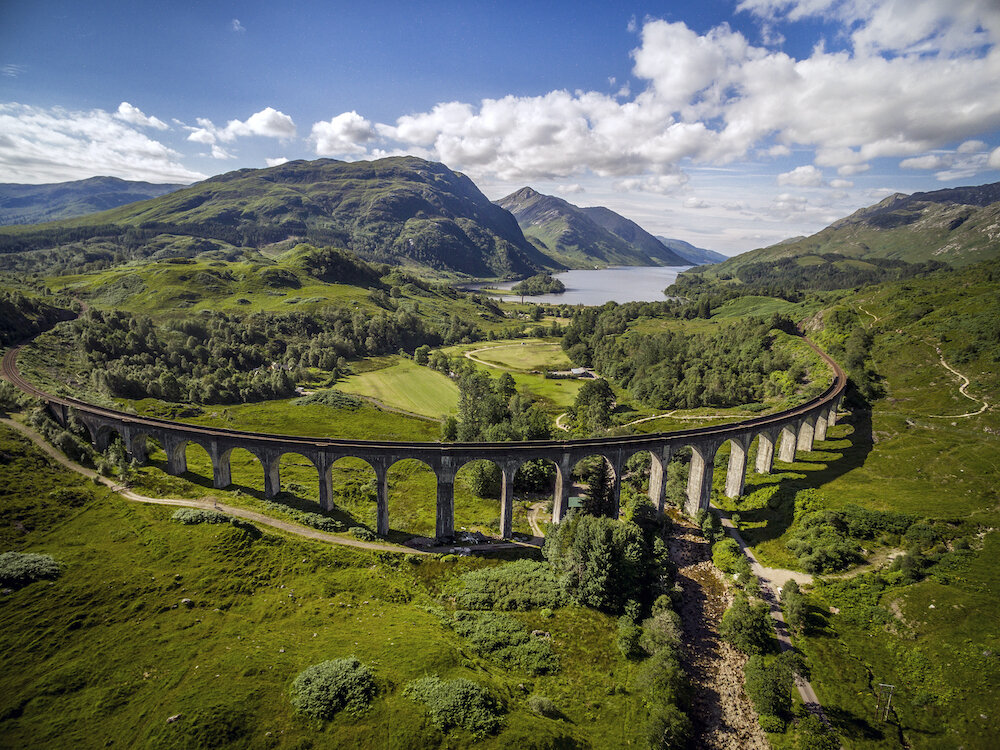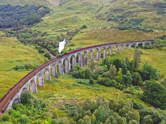 スコットランド 蒸気機関車ジャコバイト号の人気撮影スポット「グレンフィナン高架橋」地球の歩き方。