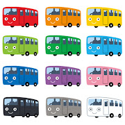 まとめ バスの乗り物フリーイラスト素材集イラストイメージ。