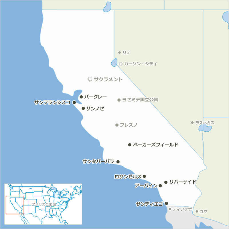 カリフォルニア州の地図 州都 主な都市 高速道路。