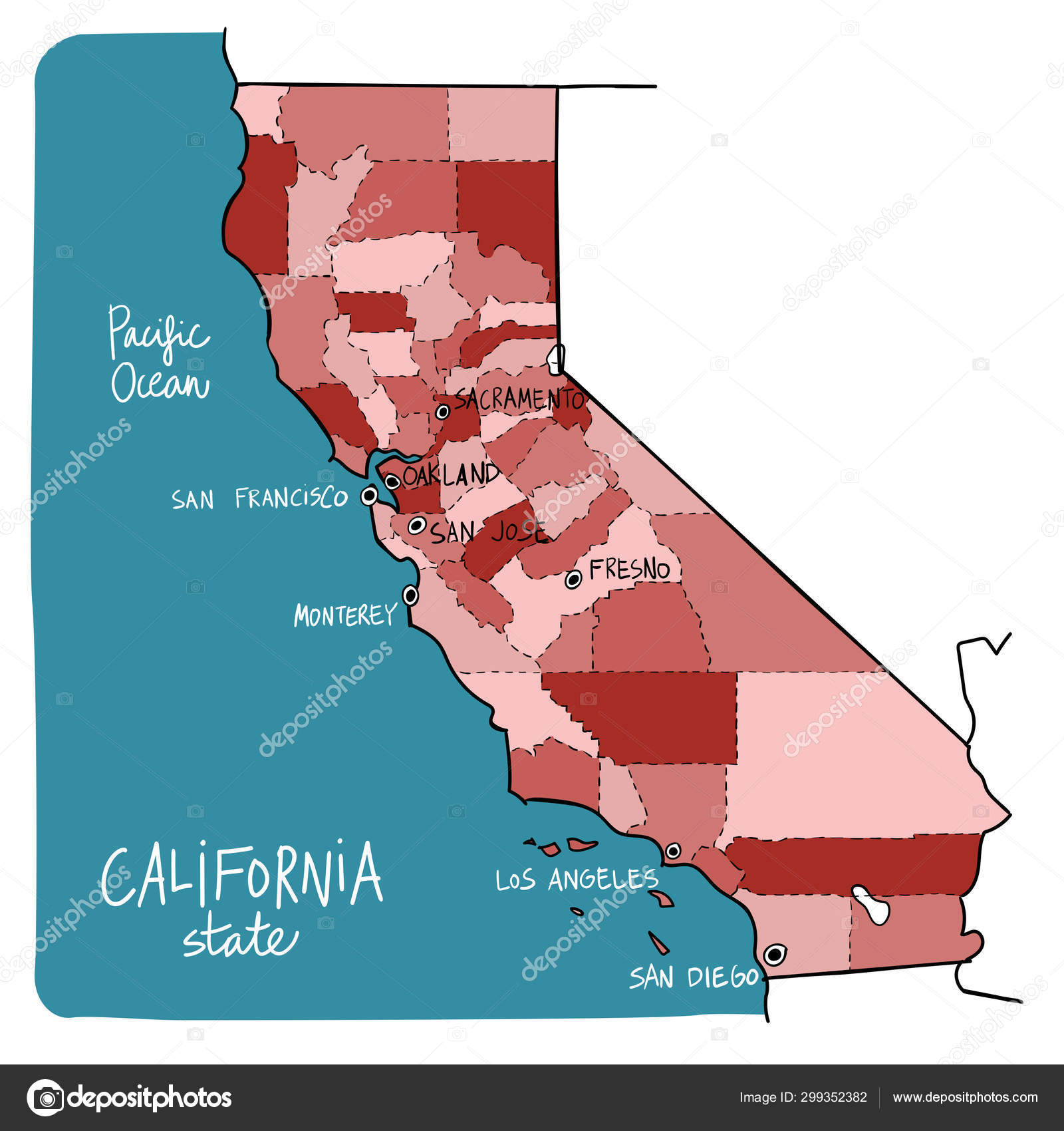 カリフォルニア州アメリカ合衆国の政治地図 - 地図のベクターアート素材や画像を多数ご用意 -。